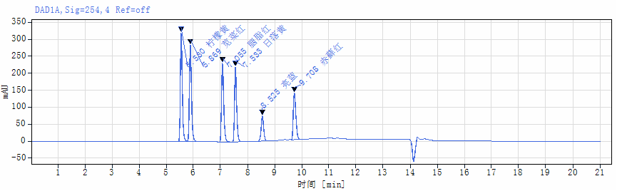 您正在浏览的产品:水中6种食用色素混标(柠檬黄、日落黄、胭脂红、苋菜红、亮蓝、赤藓红) /GB 5009.35