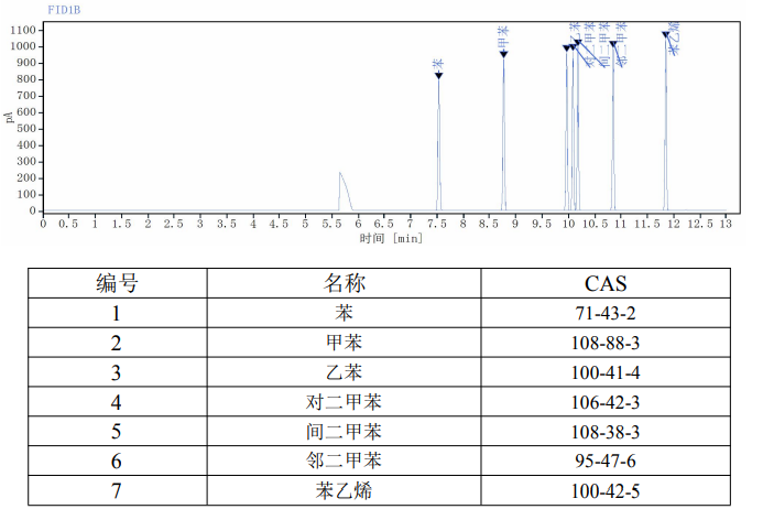 本标准物质以纯度经准确定值的苯、甲苯、乙苯、对二甲苯、间二甲苯、邻二甲苯和苯乙烯为原料,以色谱级无苯二硫化碳为溶剂,采用重量-容量法准确配制而成。