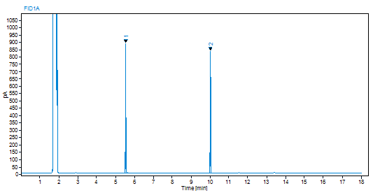 依据JJF1343技术规范(等效ISO35指南),随机抽取分装后的样品采用气相色谱法对溶液均匀性检验、稳定性考察良好。
