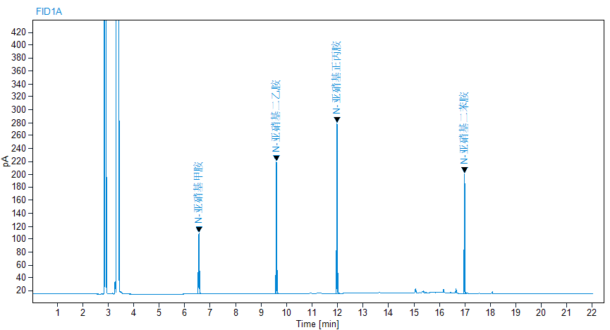 注:标准物质"二氯甲烷/甲醇中4种亚硝胺类溶液"用于校准曲线绘制和质量控制。