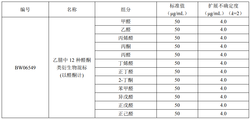 乙腈中12种醛酮类衍生物混标(质控)(以醛酮计)/HJ 1153-2020