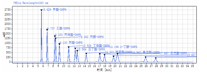 适用于环境空气及固定污染源无组织排放监控点空气中16种醛酮类化合物的测定,包括:甲醛、乙醛、丙烯醛、丙酮、丙醛、丁烯醛、丁醛、苯甲醛、异戊醛、戊醛、邻-甲基苯甲醛、间-甲基苯甲醛、对-甲基苯甲醛、己醛、2,5-二甲基苯甲醛、环己酮。