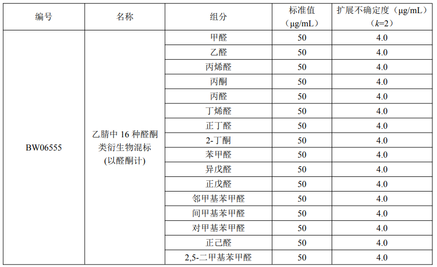 乙腈中16种醛酮类衍生物混标(质控)(以醛酮计)/HJ 1154-2020