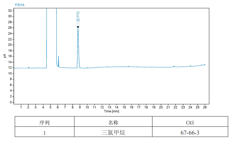 本标准物质采用纯度准确定值的三氯甲烷(CAS 号:67-66-3)为原料,以色谱级用甲醇为溶剂,采用重量容量法准确配制而成。