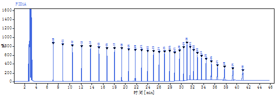 本标准物质以纯度经准确定值的31种正构烷烃纯品为原料,以色谱级正庚烷为溶剂,采用重量容量法准确配制而成。