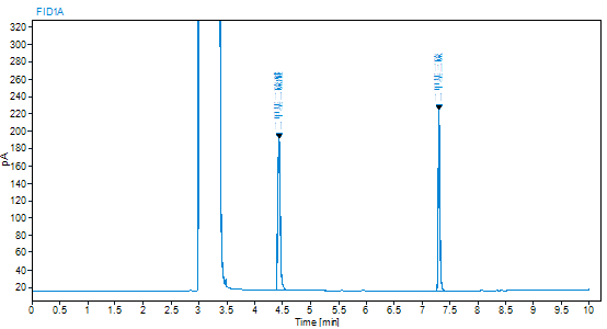 依据JJF1343技术规范(等效ISO35指南),随机抽取分装后的样品采用气相色谱法对溶液均匀性,稳定性进行考察,结果表明:均匀性符合F检验规则,稳定性考察良好。