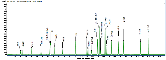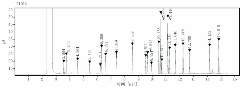 柱箱:38℃(1.8min),10℃/min→120℃,15℃/min→210℃