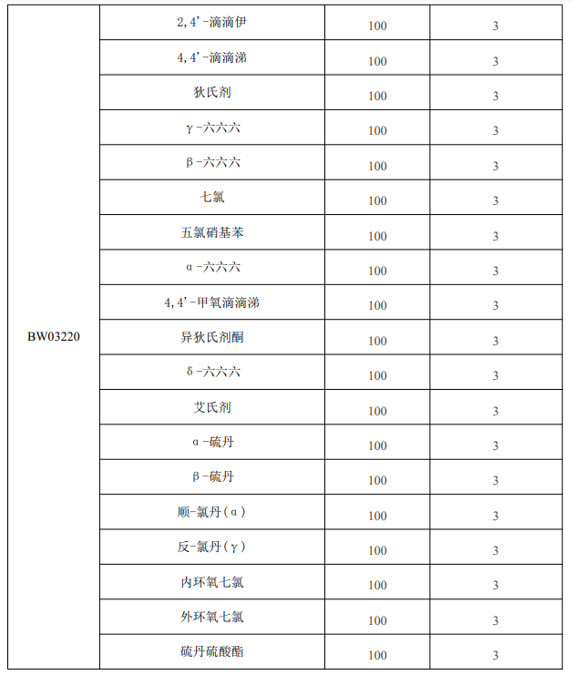 本标准适用于地表水、地下水、生活污水和工业废水中34种有机氯农药及氯苯类化合物的测定,目标化合物包括: