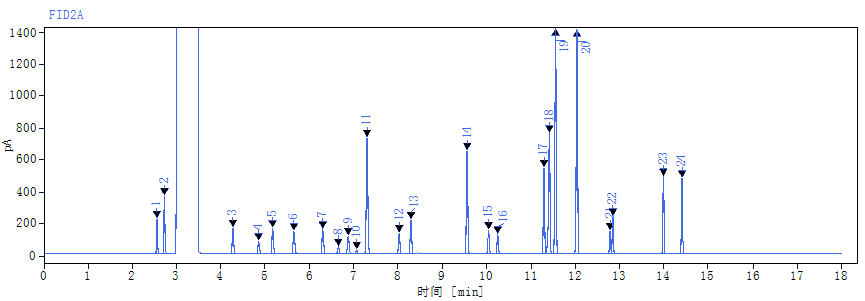 柱箱:38℃(1.8min)10.0℃/min120℃15.0℃/min210℃