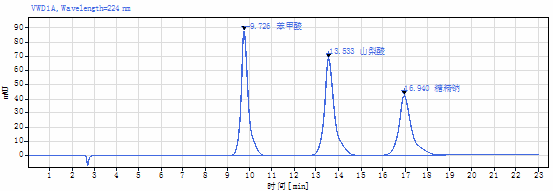 水中苯甲酸、山梨酸、糖精钠混标