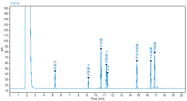 柱箱:120℃(3min)→20℃/min→180℃(5min)→5℃/min→250℃