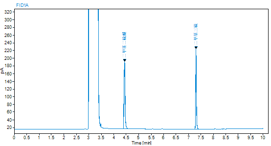 依据JJF1343技术规范(等效ISO35指南),随机抽取分装后的样品采用气相色谱法对溶液均匀性,稳定性进行考察,结果表明:均匀性符合F检验规则,稳定性考察良好。
