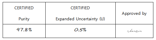 It is recommended to use 1 mg as the minimum sample size and if less material is used, to increase the certified uncertainty by a factor of two for half sample and four for a quarter of sample. If storage after opening is necessary, the RM should be tightly closed and kept from light and moisture. If the RM was in a sealed ampoule, it should be transferred to a vial with minimum head space.