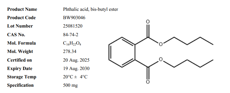 甲醇中邻苯二甲酸二丁酯溶液标准物质