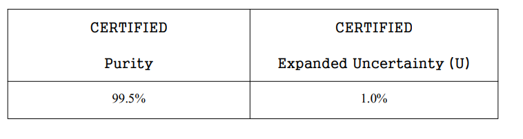 It is recommended to use 1 mg as the minimum sample size and if less material is used, to increase the certified uncertainty by a factor of two for half sample and four for a quarter of sample. If storage after opening is necessary, the RM should be tightly closed and kept from light and moisture. If the RM was in a sealed ampoule, it should be transferred to a vial with minimum head space.
