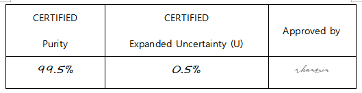 It is recommended to use 1 mg as the minimum sample size and if less material is used, to increase the certified uncertainty by a factor of two for half sample and four for a quarter of sample. If storage after opening is necessary, the RM should be tightly closed and kept from light and moisture. If the RM was in a sealed ampoule, it should be transferred to a vial with minimum head space.