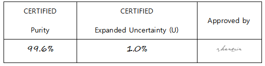 It is recommended to use 1 mg as the minimum sample size and if less material is used, to increase the certified uncertainty by a factor of two for half sample and four for a quarter of sample. If storage after opening is necessary, the RM should be tightly closed and kept from light and moisture. If the RM was in a sealed ampoule, it should be transferred to a vial with minimum head space.