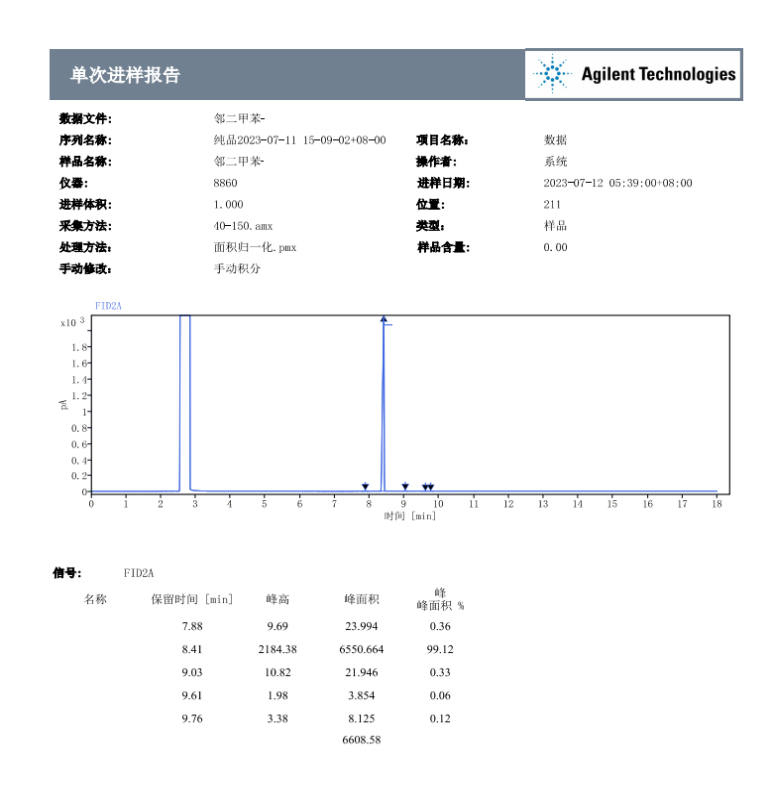 甲醇中邻二甲苯溶液(质控)苯系物单标