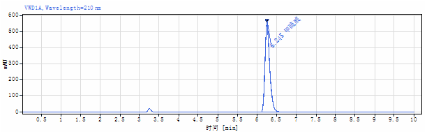依据JJF1343技术规范(等效ISO35指南),随机抽取分装后的样品采用液相色谱法对溶液均匀性检验、稳定性考察。结果表明均匀性、稳定性良好。