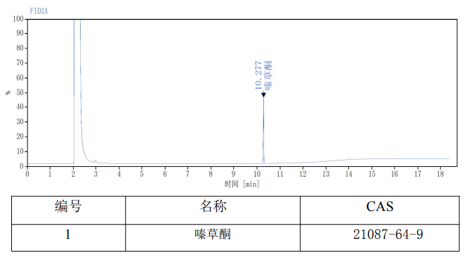 本标准物质以纯度经准确定值的嗪草酮(CAS: 21087-64-9)为原料,以色谱级甲醇为溶剂,采用重量-容量法准确配制而成。