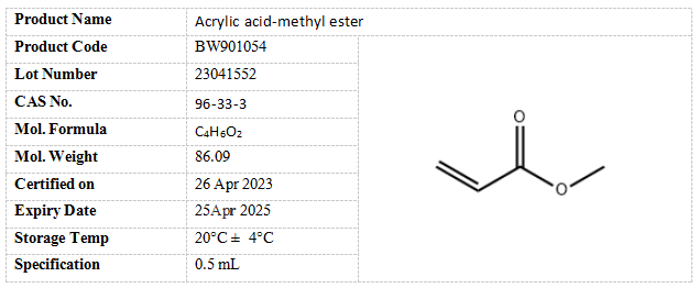 二硫化碳中丙烯酸甲酯溶液标准物质