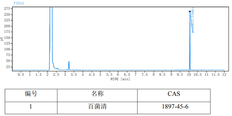 本标准物质以纯度经准确定值的百菌清(C8Cl4N2,CAS:1897-45-6)为原料,以色谱级丙酮为溶剂,采用重量-容量法准确配制而成。