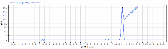 2.贮存及使用:-18℃冷冻避光条件下保存,启封前于室温(20±3)℃平衡,并充分摇匀,按需要准确移取。安瓿瓶一经打开,应立即使用,不可再次熔封后作为标准物质使用。
