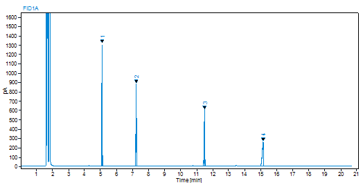 依据JJF1343技术规范(等效ISO35指南),随机抽取分装后的样品采用气相色谱法对溶液均匀性检验、稳定性考察良好。
