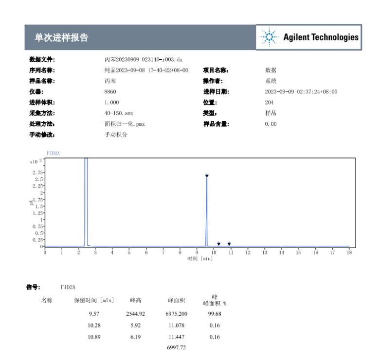 3. 气相色谱柱推荐使用HP-5毛细管柱(30 m×0.32 mm×1.0 μm)。