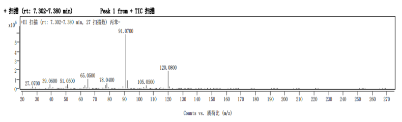 3. 质谱扫描模式为全扫描(Scan),定量离子为91、92、105 amu。