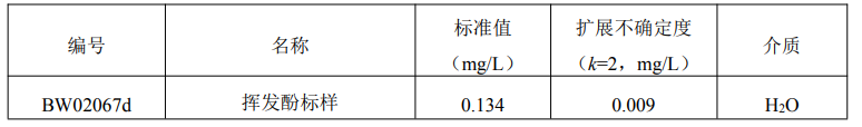 本标准样品用于水中挥发酚的分析测试及宣贯的分析方法确认与评价、实验室质量控制。