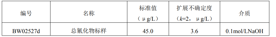 本标准样品用于水中总氰化物的分析测试及宣贯的分析方法确认与评价、实验室质量控制。