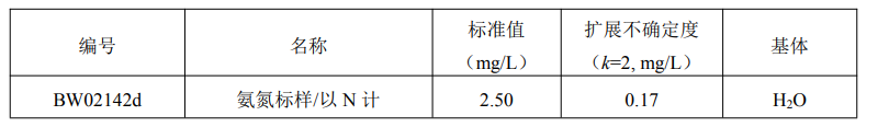 本标准品应按以下程序稀释后方可使用:用清洁干燥的移液管从安瓿瓶中准确移取10.0mL标准样品至250mL容量瓶中,用纯水稀释定容至刻度,混匀后立即使用。稀释后的标准值和扩展不确定度为: