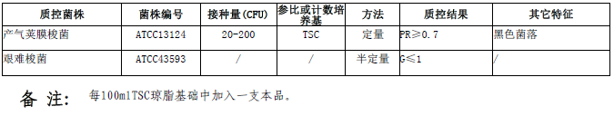 按标签用法制备培养基,接种以下质控菌株,放置36±1℃厌氧培养20-24小时。