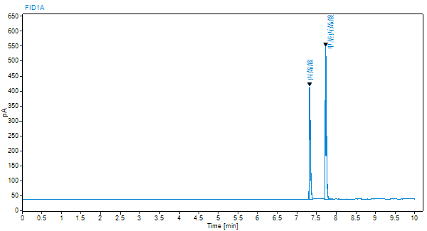 依据JJF1343技术规范(等效ISO35指南),随机抽取分装后的样品采用气相色谱法对溶液均匀性,稳定性进行考察,结果表明:均匀性符合F检验规则,稳定性考察良好。