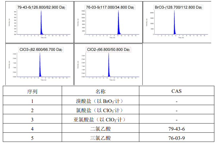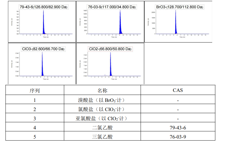 可同时测定氯酸盐、亚氯酸盐、溴酸盐、二氯乙酸、三氯乙酸