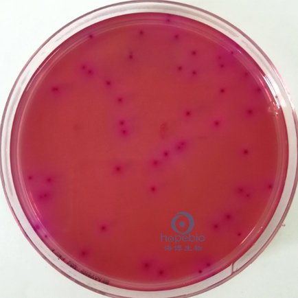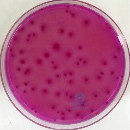 称取本品41.5g,加热溶解于1000ml 蒸馏水中,煮沸不要超过2分钟。取适宜稀释度样品液1ml,加入到无菌平皿中心,将冷至45±0.5℃的VRBA 10-15ml倾注于平皿中。小心旋转平皿将培养基与样液充分混匀。凝固后,再加3-4mlVRBA 覆盖平板表层 ,翻转平板 ,置于36±1℃培养18-24小时。无需高压灭菌。临用时制备,不得超过3小时。