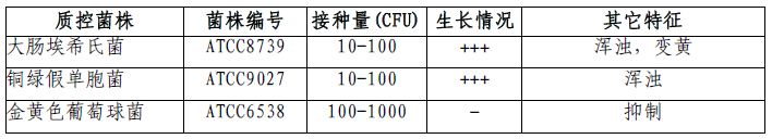 按标签用法制备培养基,接种以下质控菌株,放置30-35℃需氧培养18-24小时。