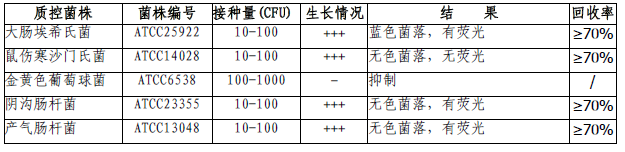 接种以下质控菌株,放置35±2℃需氧培养20-24小时。 注:回收率计算时,用TSA琼脂做对照培养基。