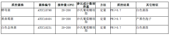 按标签用法制备培养基,接种以下质控菌株,放置28±1℃需氧培养48-96小时。