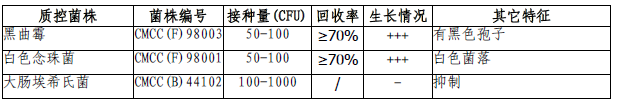 按标签用法制备培养基,接种以下质控菌株,放置20-25℃需氧培养48-72小时。