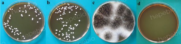 a:酵母菌,b:白色念珠菌,c:黑曲霉,d:大肠埃希氏菌