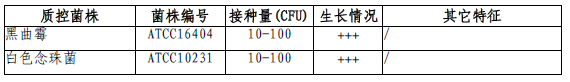 按标签用法制备培养基,接种以下质控菌株,放置25-28℃需氧培养72小时。