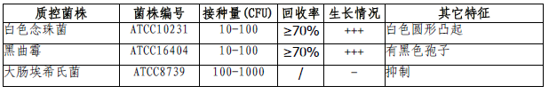 沙氏葡萄糖琼脂培养基(含氯霉素)USP标准微生物灵敏度试验: