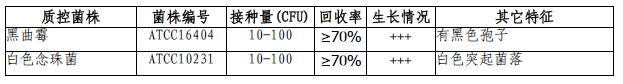 按标签用法制备培养基,接种以下质控菌株,放置20-25℃需氧培养48-72小时。注:回收率计算时,用SDA琼脂做对照培养基。