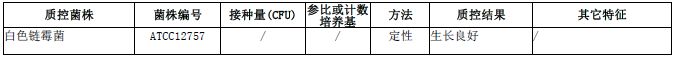 按标签用法制备培养基,接种以下质控菌株,放置28℃需氧培养48-72小时。