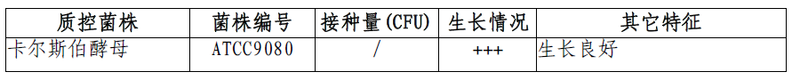 按标签用法制备培养基,接种以下质控菌株,放置30℃需氧培养24-48小时。