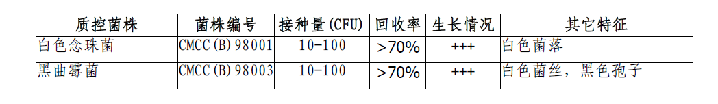 按标签用法制备培养基,接种以下质控菌株,放置28℃需氧培养72-120小时。