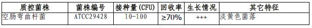 按标签用法制备培养基,接种以下质控菌株,放置36±1℃微需氧培养22±2小时。 注:回收率计算时,用无抗生素的CCD琼脂做对照培养基。