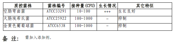 按标签用法制备培养基,接种以下质控菌株,放置42±1℃微需氧培养24-48小时。